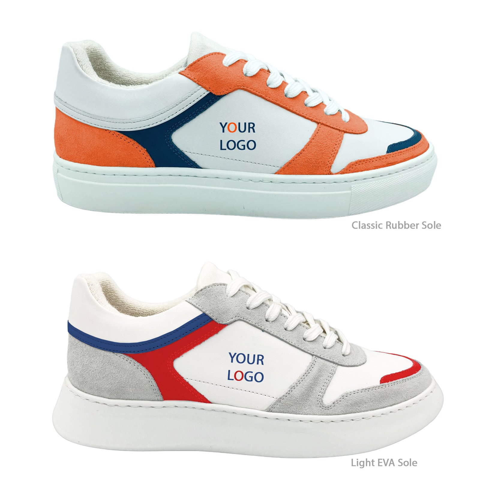 - High-grade rubber soles. On request Lightweight EVA sole or bi-color custom sole.